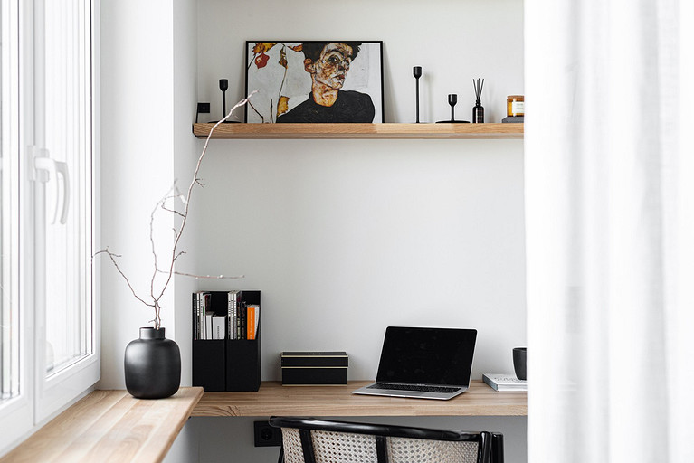 - Декор: посуда, декор, зеркало и ковер La Redoute, интерьерные постеры — репродукции Эгона Шиле