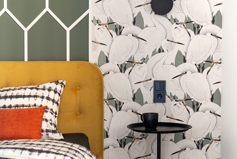 - Стены: интерьерная краска Vinsent, обои Rash, молдинги Décor Design