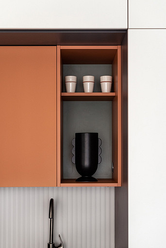 - Стены: интерьерная краска Vinsent, зона фартука у мойки — панели и молдинги Décor Design