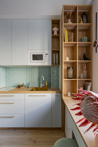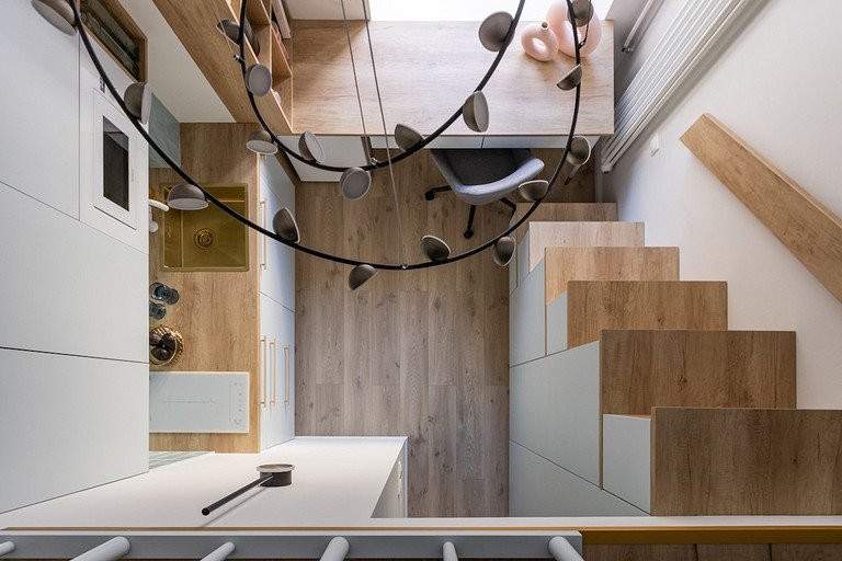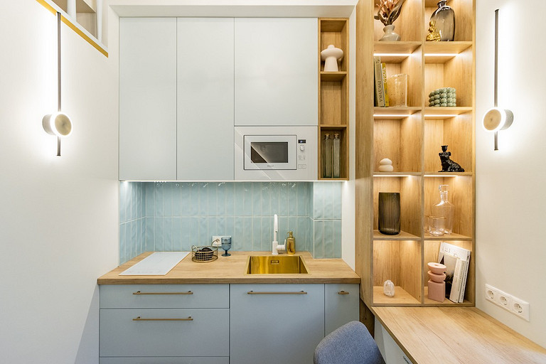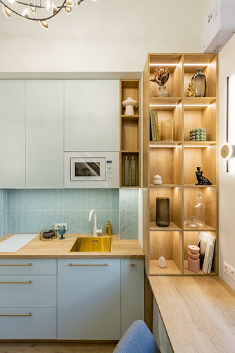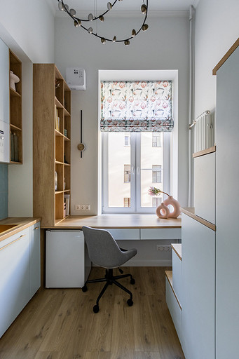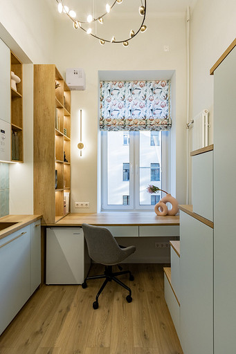 В этом проекте интересно все: начиная от расстановки мебели и техники в крошечном пространстве (дизайнеру удалось вместить кухню, рабочую зону, спальню и сделать душевую с туалетом 1,4 кв. м) и заканчивая расположением дома, где находится эта комната — в самом центре Санкт-Петербурга, на Фонтанке, это Дом дирекции императорских театров, построенный в 1835 году. Читать далее...