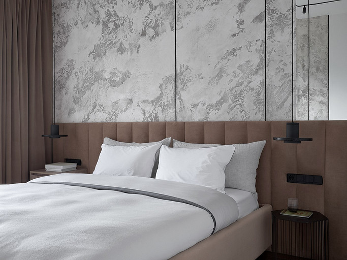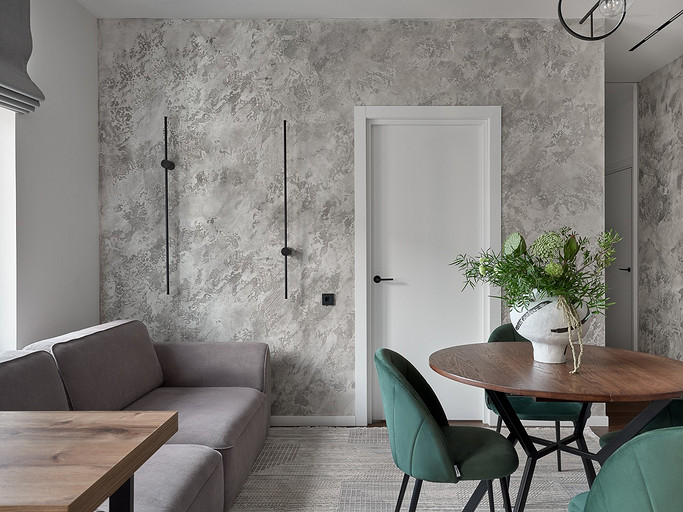 - Стены и потолок: краска Little Greene, декоративная штукатурка Vincent Decor (по эскизам дизайнера)