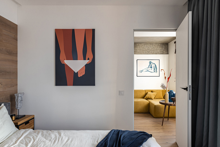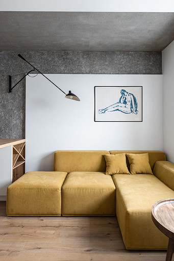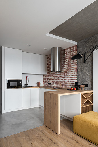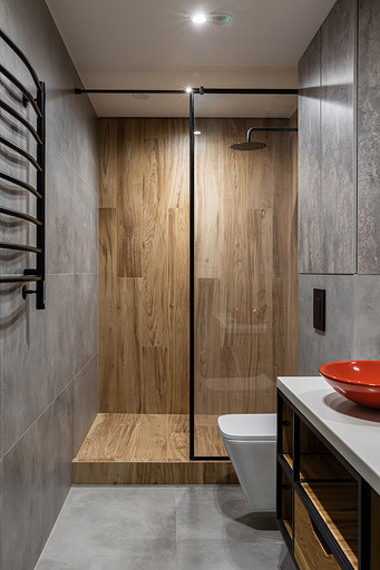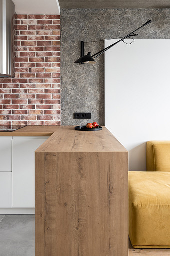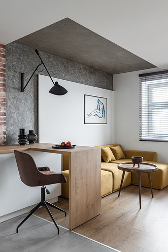 Квартира площадью 43 м2 расположена в г. Киров в ЖК «Близкий» практически в центре города. Уютная холостяцкая квартира в стиле минимализм с элементами лофт. На этих небольших метрах отлично расположилась кухня-гостиная, спальня, гардеробная, совмещённые санузел и кабинет в зоне лоджии.
