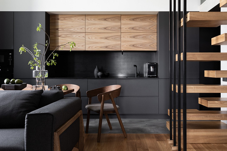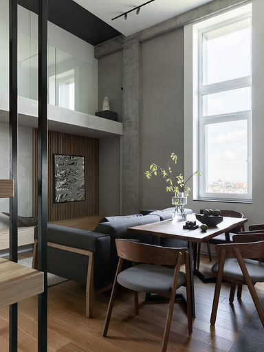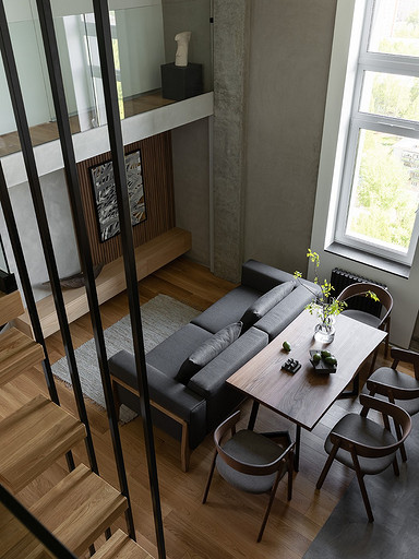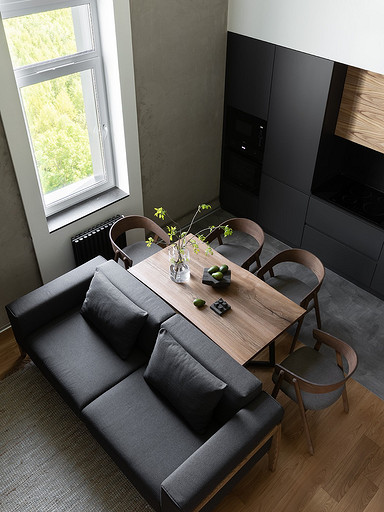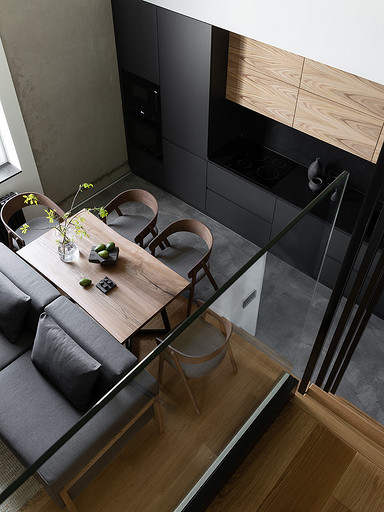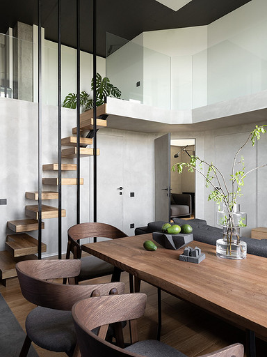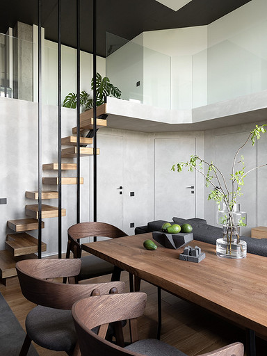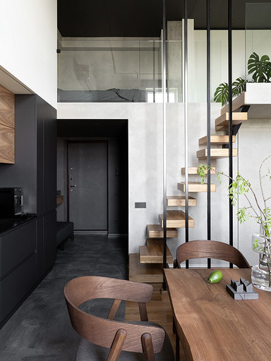 Изначальные данные — квартира расположена на последнем этаже и имеет высоту потолков 4,7 метра — позволили реализовать необычный проект и с пользой увеличить площадь, обустроив все нужные функциональные зоны. Читать далее...