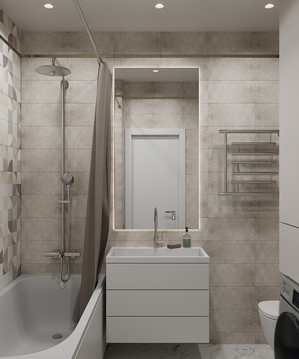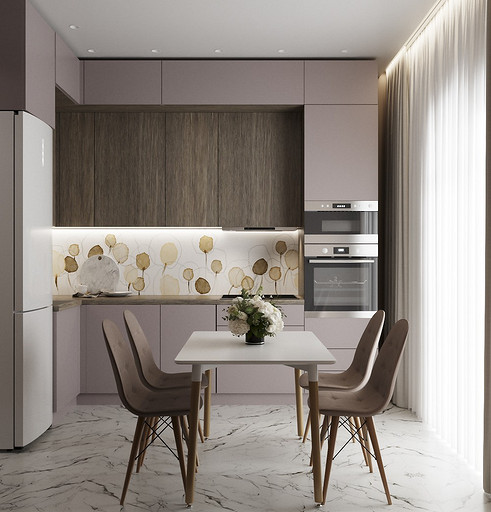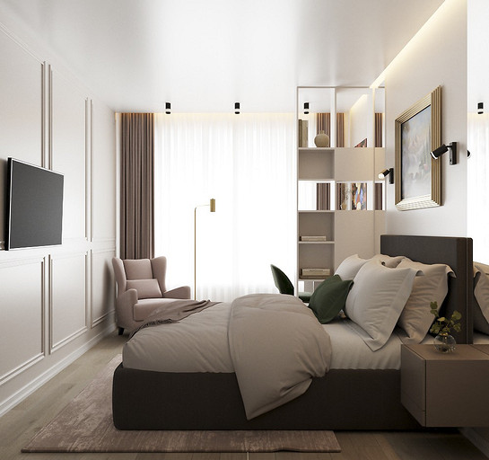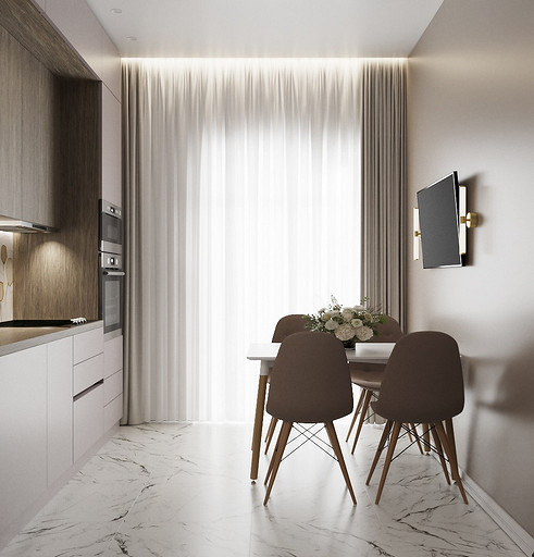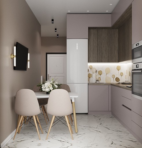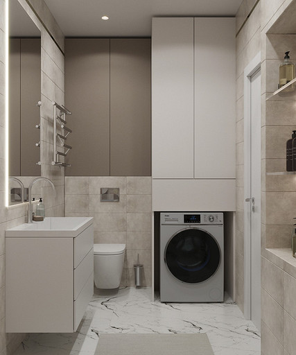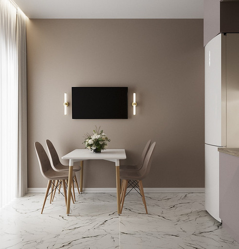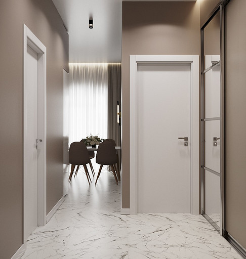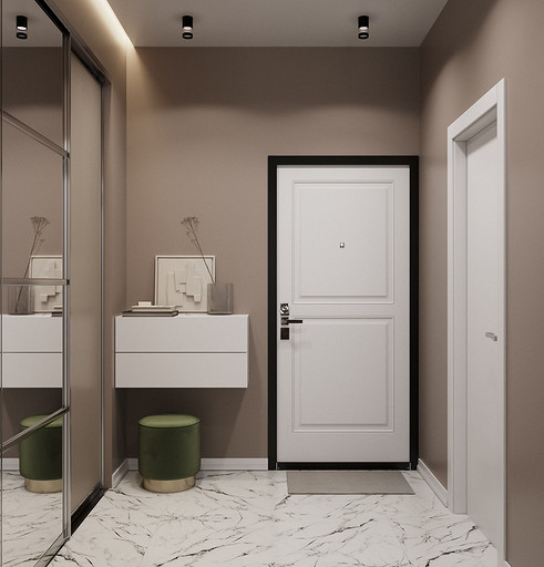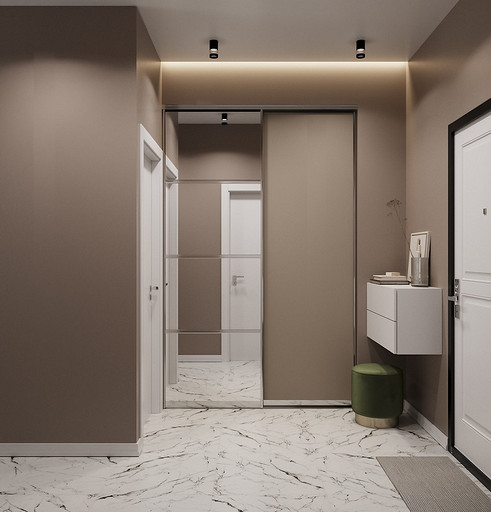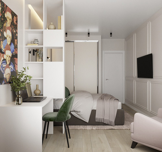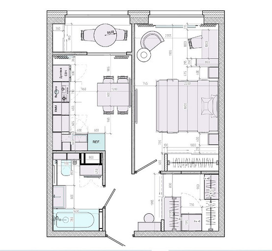 Клиенты — состоявшаяся семейная пара, которые планируют переезд в новую квартиру в Гатчине из другого региона. На редкость дружная пара, которые планируют свить новое гнездышко и обосноваться в нем. Хозяйка любит готовить и вышивать, а для главы семьи требуется обустроить отдельное рабочее место с хорошим освещением. Изначально в наши задачи входило спроектировать комфортную кухню с максимально большой рабочей зоной и столовую зону, устроить вместительную гардеробную, спланировать небольшой санузел так, чтобы разместилось всё необходимое — стиральная машина, ванная, раковина и унитаз со скрытым баком. У меня большой опыт работы с планировками такого типа, поэтому сразу же во время замера я предложила перенести вход в гардеробную из спальни в коридор, устроив гардеробную-купе, с чем будущие жильцы сразу же согласились, поэтому на всех планировочных решениях эта зона претерпевает лишь минимальные изменения.