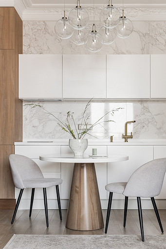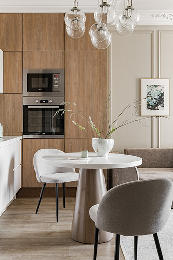 - Мебель: кухня и обеденный стол — индивидуальное производство, стулья La Redoute, диван divan.ru, столик Dantone Home
