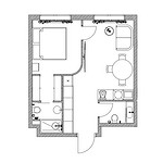 На небольшой площади разместили кухню-гостиную, спальню и санузел. Читать далее...