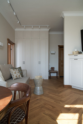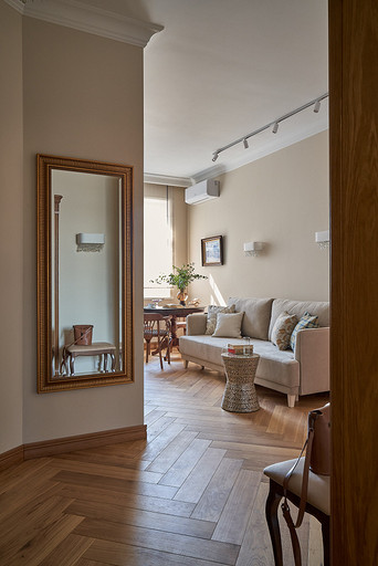 По изначальному замыслу интерьер планировался ближе к современной классике, с более легкими и воздушными формами и мебелью. Но в процессе реализации хозяйка поняла, что ей по душе другое: основательность и традиции. Дизайнеры воплотили все пожелания своей заказчицы. Читать далее...
