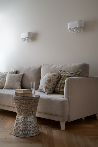 - Освещение: люстра Artglass, бра Odeon Light, остальной свет Maytoni