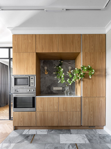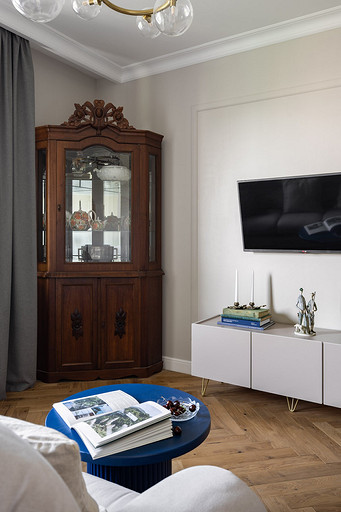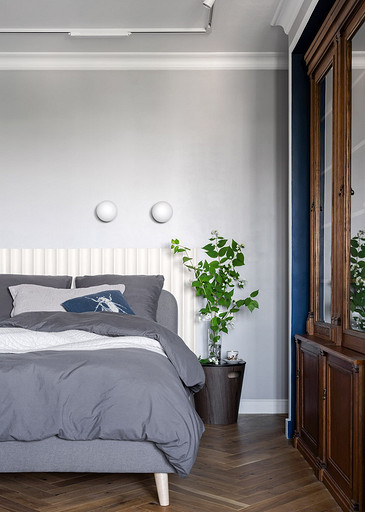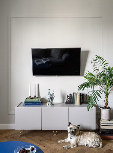- Мебель: кровать и тумба под ТВ divan.ru, системы хранения и кухня сделаны на заказ
