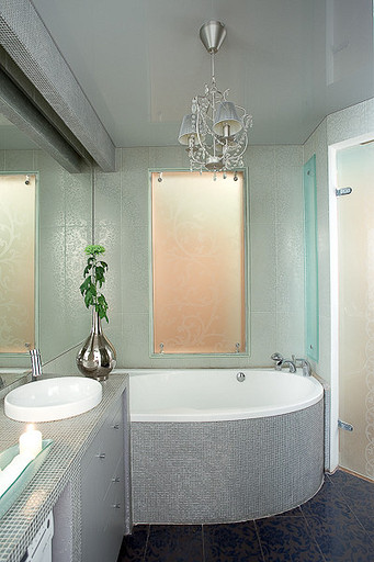 (Baumit) и облицевали серебристой мозаикой Vitrex