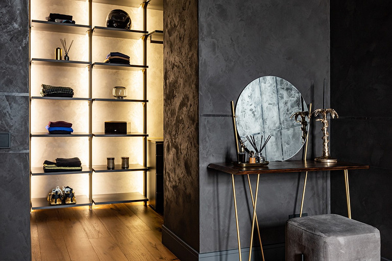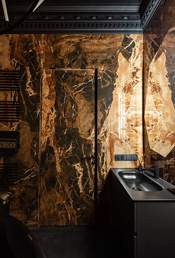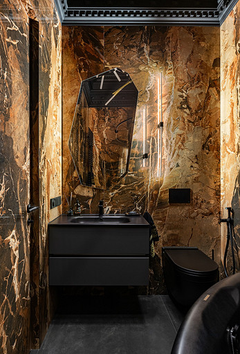 - Стены и пол: керамогранит Rex Cerаmice, Laminam