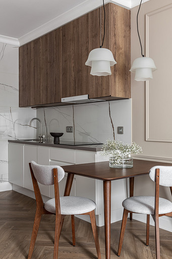 Апартаменты, 41 кв.м. Москва, 2022 Проект был назван «Fly me». Он о молодой студентке, мечтательной девушке, всем сердцем обожающей Францию. Признаться, я полюбила его с первых секунд разговора о концепции, о пожеланиях и цветовых предпочтениях клиента. Данный проект создавался в полной гармонии и понимании, что мы идем в очень красивую, нежную, но при этом характерную историю с глубокими сложными цветами, геометрией и классическими приемами. Эта квартира – место, где любим каждый уголок, где тепло и уютно в любое время года.