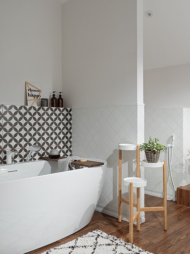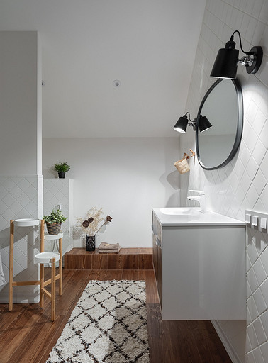 - Пол: керамогранит Kerama Marazzi, инженерная доска Finex