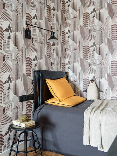 - Стены: обои с городом Decoprint, обои с линиями York