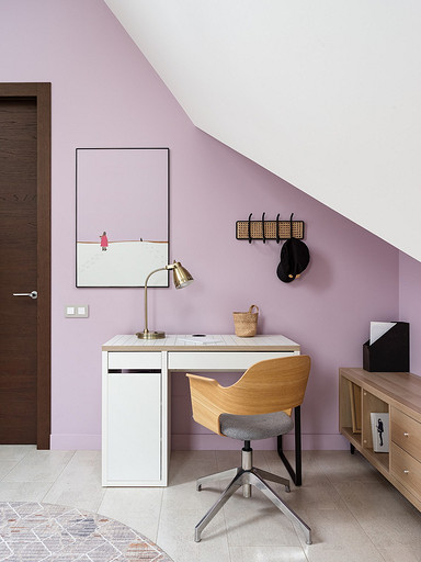 - Мебель: барный стол, стулья и кровать La Redoute, письменный стол, рабочий стул, стеллаж и ширма ИКЕА, шкафчик H&M Home