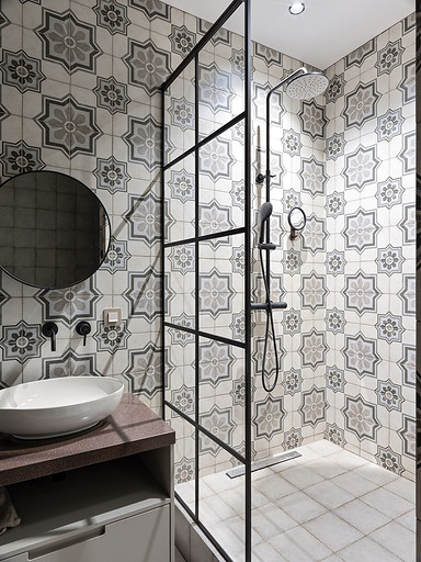 - Стены: керамогранит Equipe