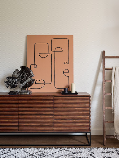 - Декор: кашпо, часы и ваза на столе La Redoute, картина — Ирина Халезова (печать на пенокартоне в багете «Чистый Цвет»)