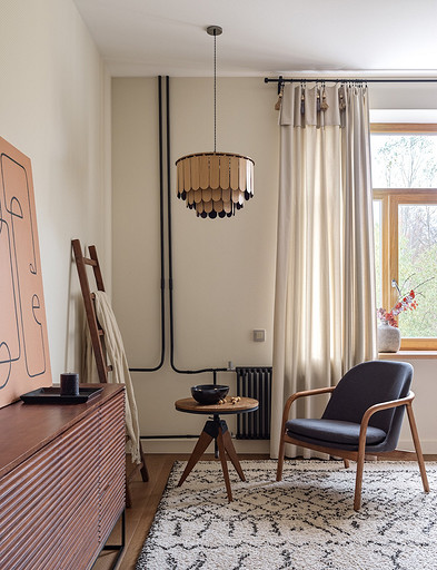 - Освещение: подвес H&M Home, бра La Redoute, встроенные светильники Maytoni, настольная лампа ИКЕА, торшер Lampatron