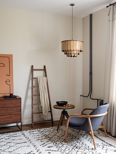 - Освещение: подвесы Cosmo, бра и настольный светильник La Redoute Interiors, накладной светильник Lucide