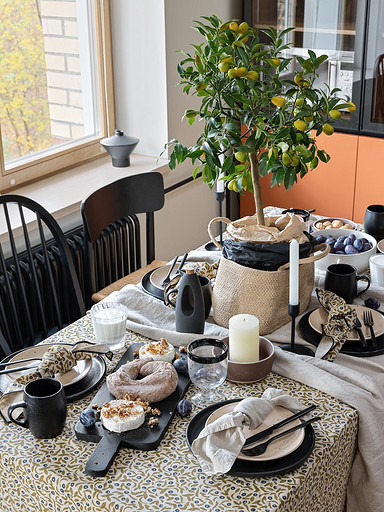 - Текстиль: скатерти и салфетки La Redoute, H&M Home, плед на кресле Zara Home, подушки La Redoute, ковер Arte De Vivre