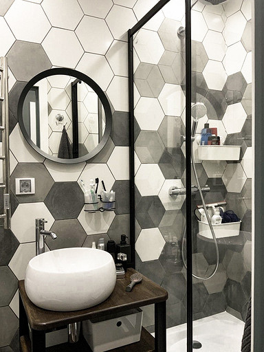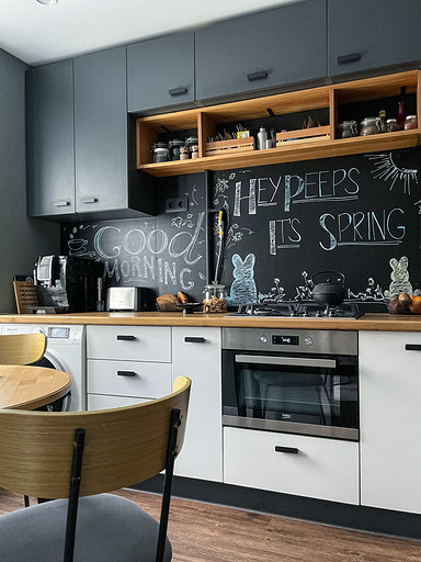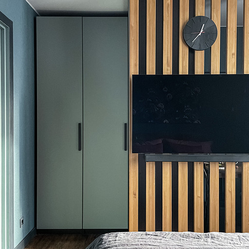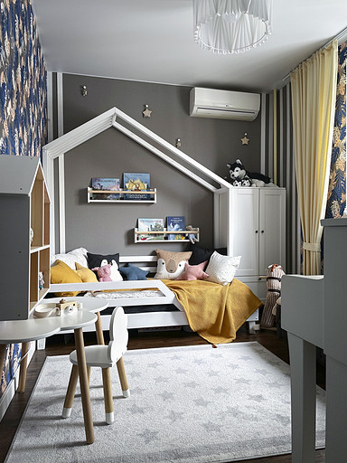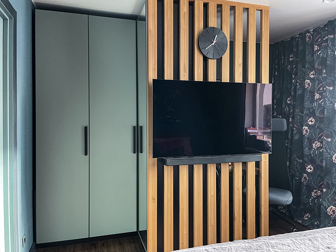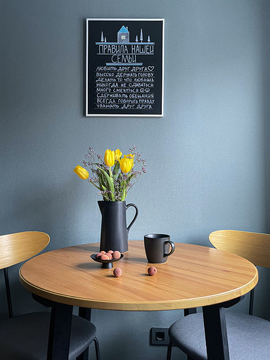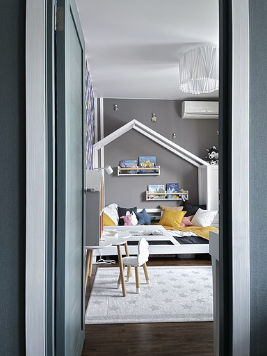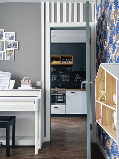 Тот случай, когда даже на пару лет есть смысл делать удобно, функционально и красиво. Миниатюрная двухкомнатная квартира в старом фонде под реновацию для семьи с ребенком.