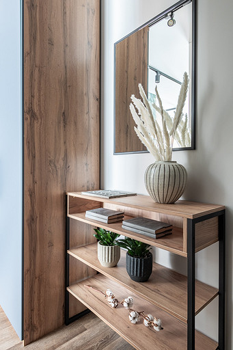 - Мебель: кухня сделана на заказ, стеллаж Jysk