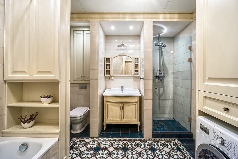 - Оборудование: полотенцесушитель Margaroli, стиральная машина Bosch