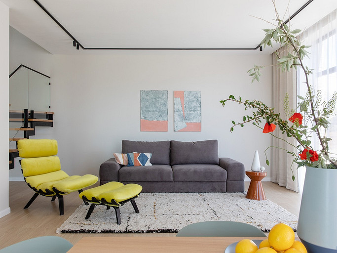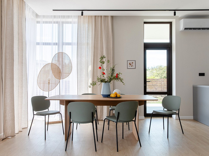- Мебель: кухня Mr.Doors, обеденный стол и керамический столик La Redoute, стулья Cosmorelax, кресло Ntko, придиванный столик Matmat, диван Elke