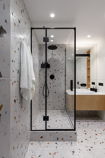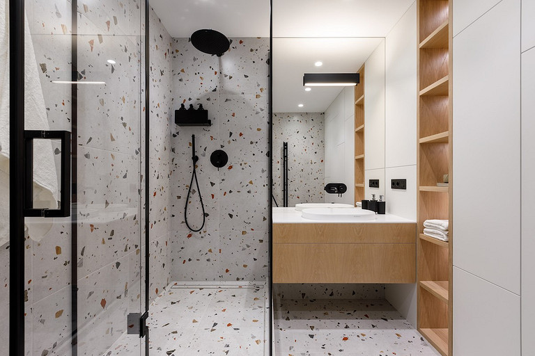 - Стены: мебельные МДФ-панели, керамогранит Arcana