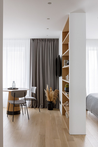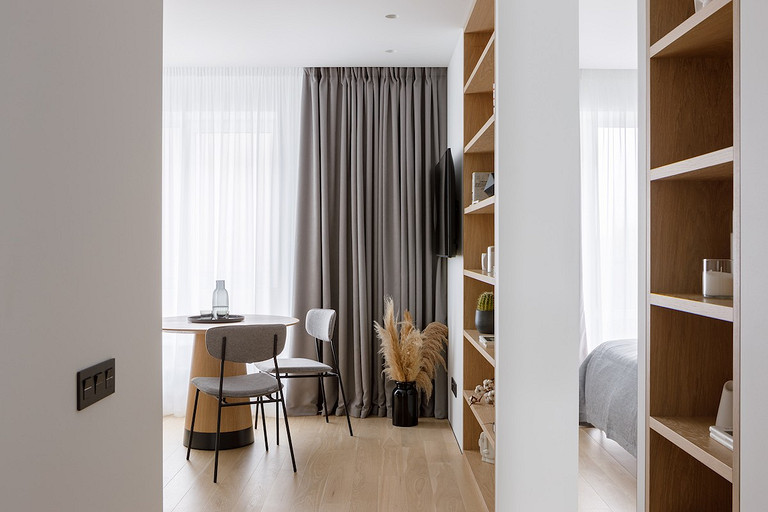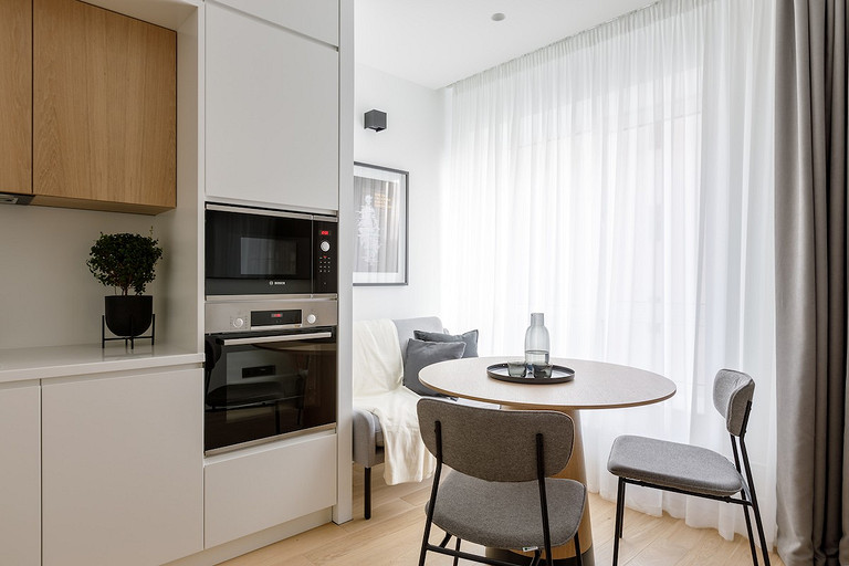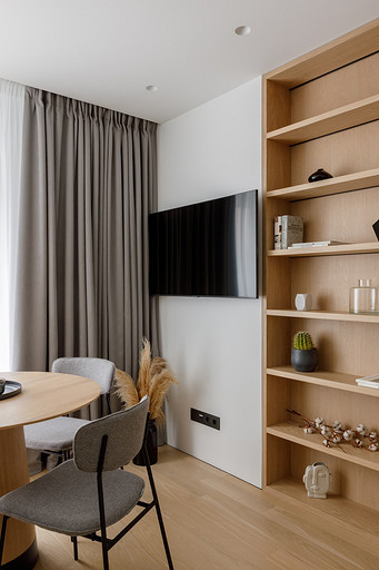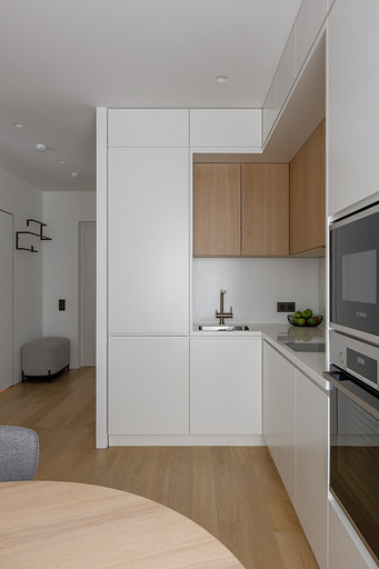 Жилье допускает разные варианты проживания. Возможно, здесь обоснуется хозяин, а возможно, квартиру снимет супружеская пара. Именно поэтому обстановку изначально планировали универсальной. Чтобы не утяжелять скромную площадь, задействовали студийную организацию пространства, а мебель сделали по индивидуальным проектам. Читать далее...