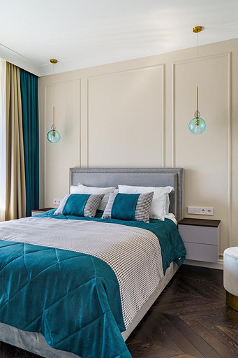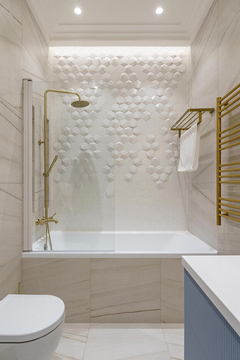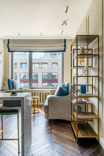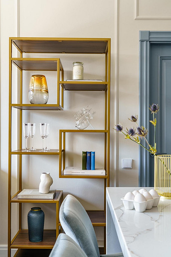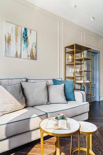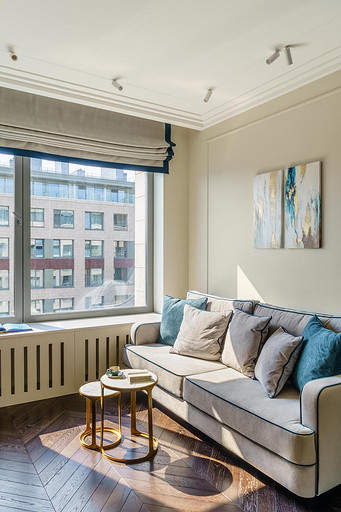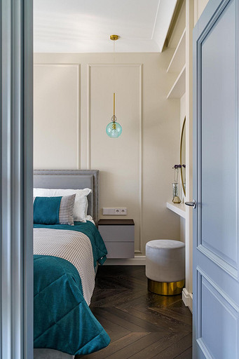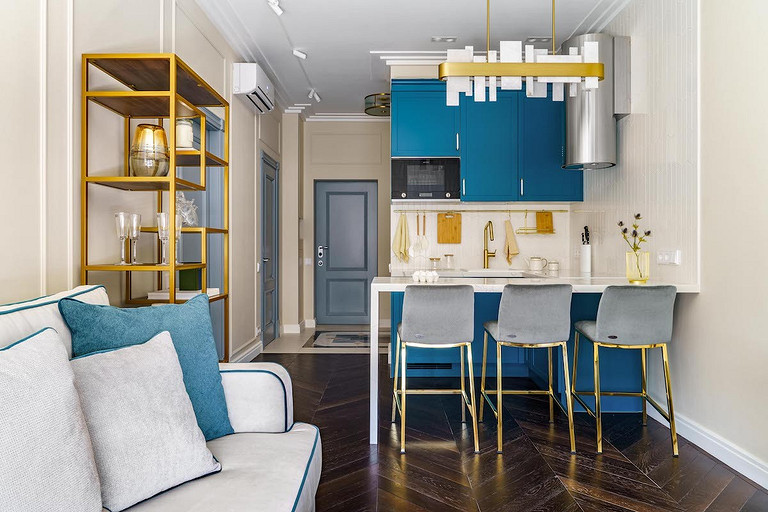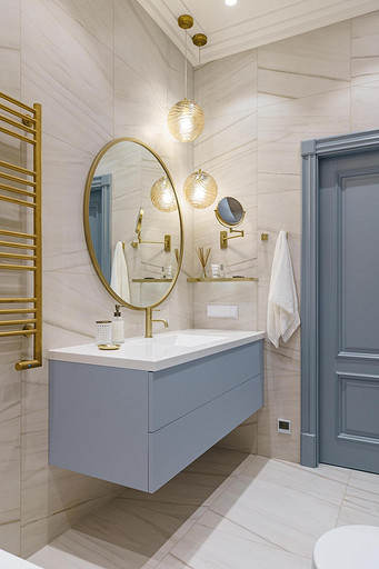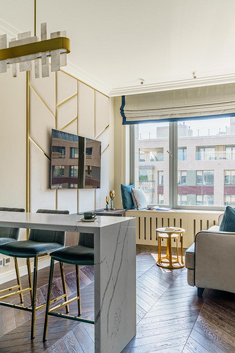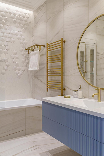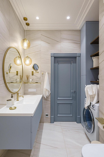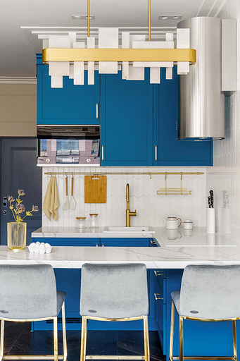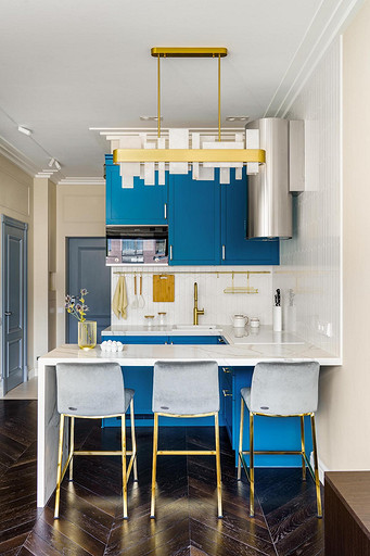 Стильный интерьер построен на предпочтениях владельцев квартиры, которые время от времени приезжают отдохнуть в культурную столицу. В противовес обычно пасмурным и серым пейзажам Петербурга пространство оформлено в цветах солнечного морского побережья. Синие и голубые оттенки, приятный глазу молочно-бежевый и яркие золото и латунь настраивают на позитив. Читать далее...