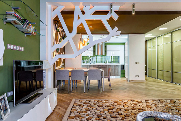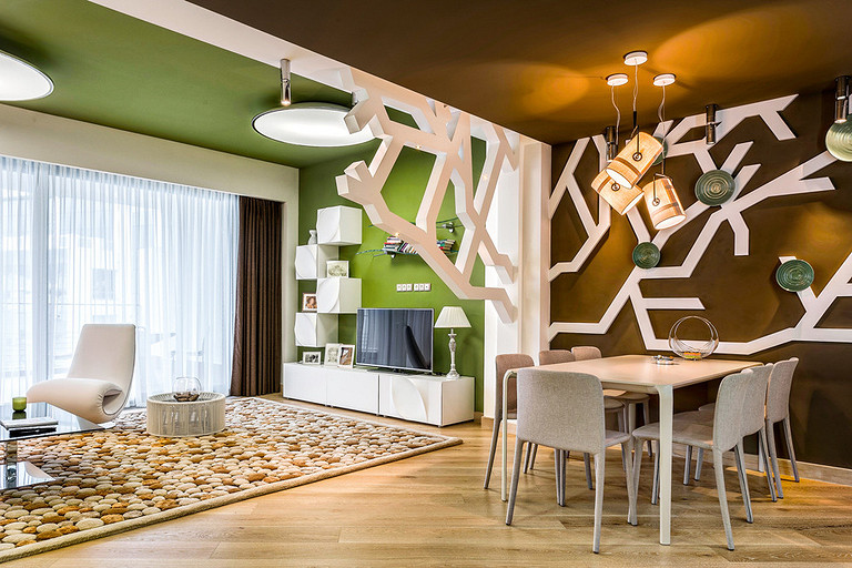 Как прекрасно, когда в тёплый летний вечер за общей трапезой под сенью загородного сада собираются три поколения семьи. Именно такой образ заложен в дизайне ялтинской квартиры, а при подробном знакомстве с интерьерами обнаруживаются и другие необычные детали. Проект удалось реализовать благодаря творческой фантазии архитектора и готовности заказчиков к смелым экспериментам