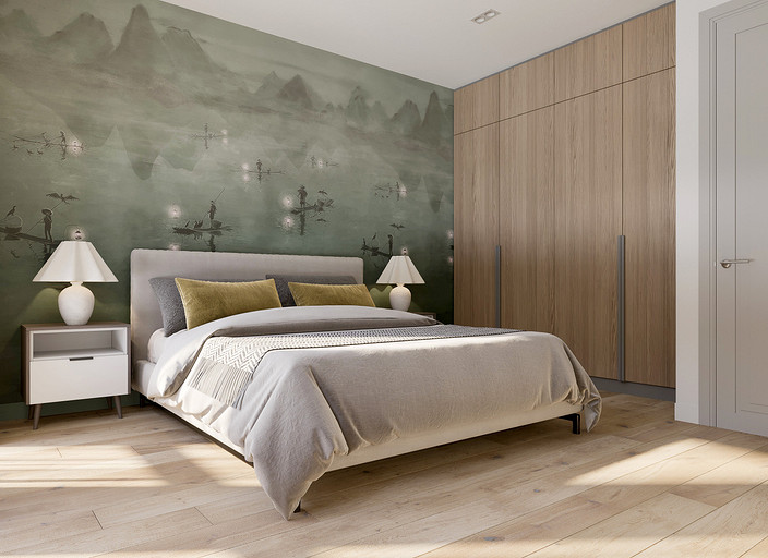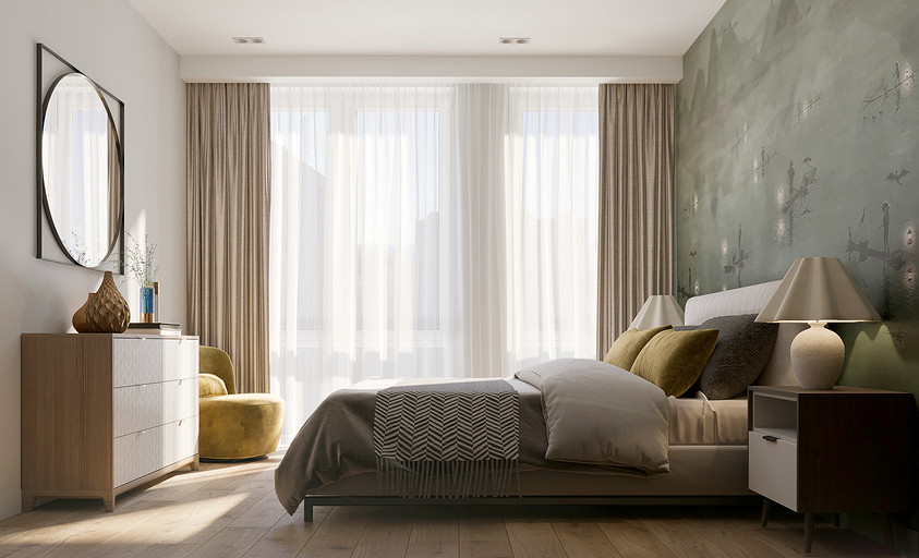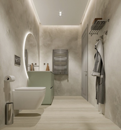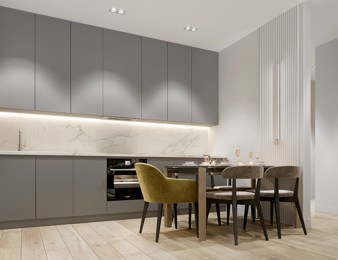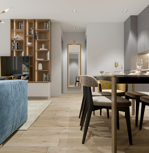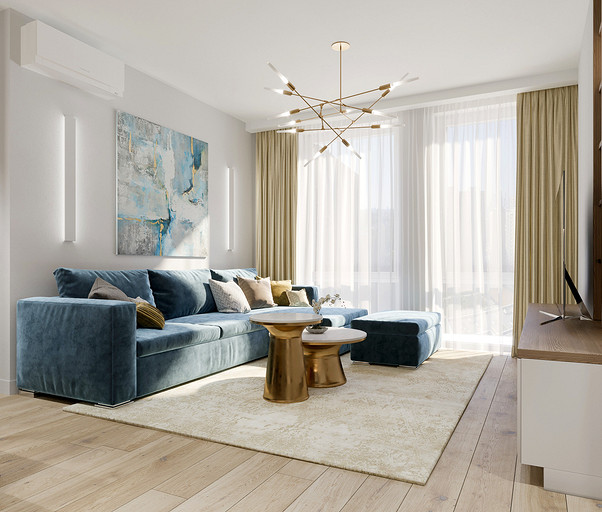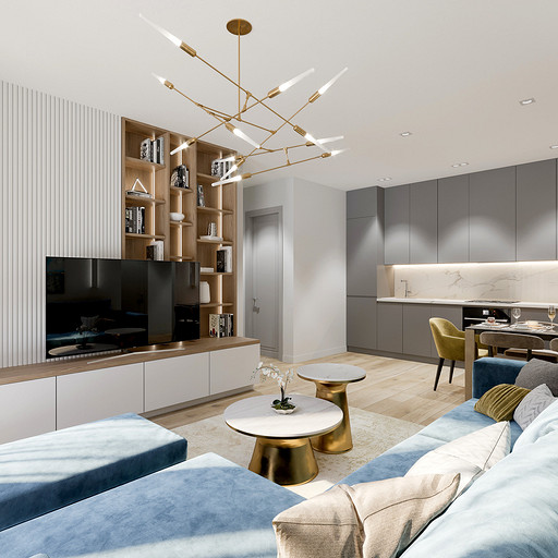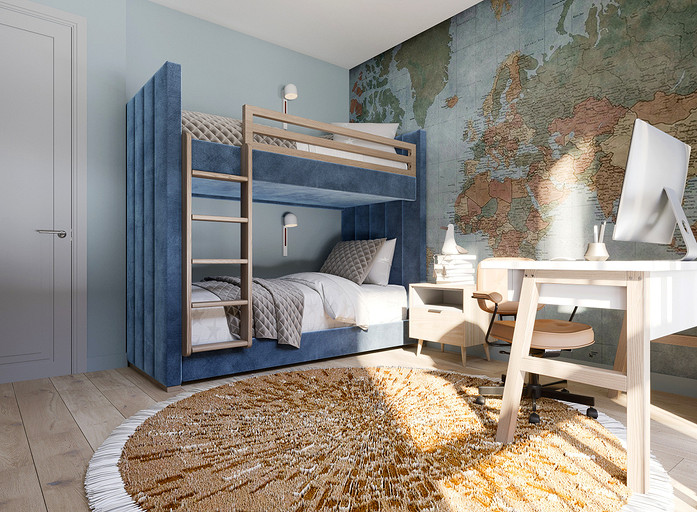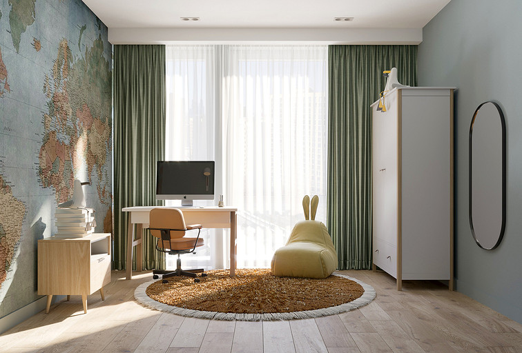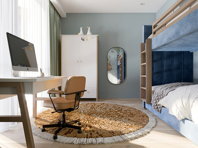 Квартира расположена в новостройке в доме бизнес-класса в двух шагах от лесного массива «Октябрьское радиополе». Квартира предназначена для семьи с двумя детьми. Семья мечтала о современном интерьере в светлых тонах с использованием ярких и оригинальных предметов мебели. Хозяева планировали в будущем оставить квартиру своим детям, а самим переехать жить загород. Поэтому важно было придумать интерьер, который будет вне времени. Основной задачей было разместить две спальни и общую зону: кухню – гостиную. Так же было важно предусмотреть побольше мест для хранения. Планировка включает в себя: прихожую, кухню-гостиную, мастер-спальню, детскую, два санузла.