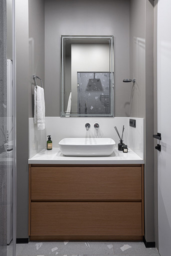 - Стены: краска Dulux, керамогранит Arcana Ceramica