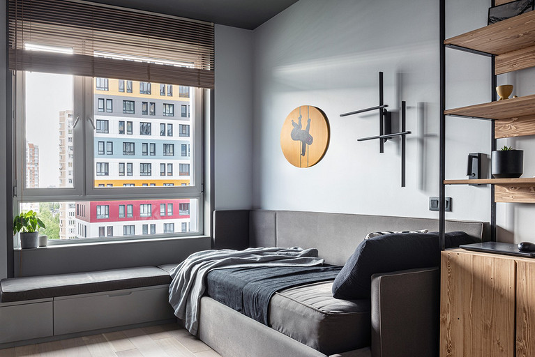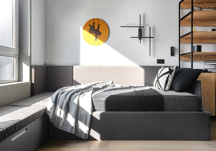 - Мебель: ИКЕА, корпусная мебель сделана на заказ в столярной мастерской, кровать «Спи красиво»