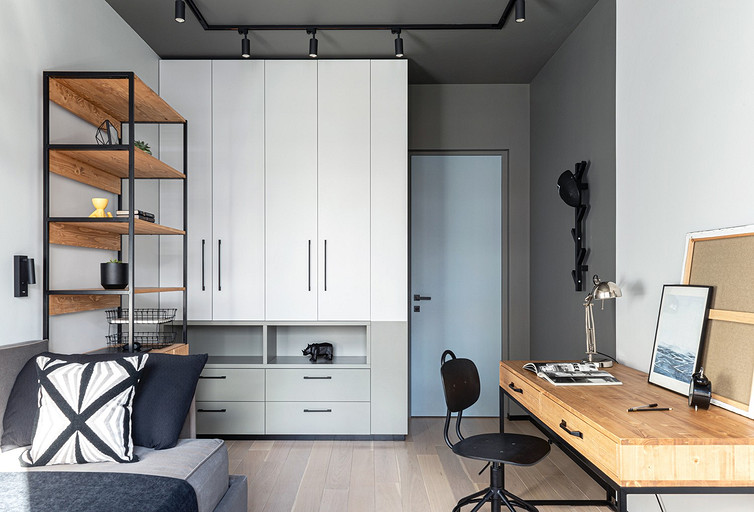 - Мебель: стеллаж и стол Piterloft, кровать «Спи красиво», корпусная мебель сделана на заказ в столярной мастерской