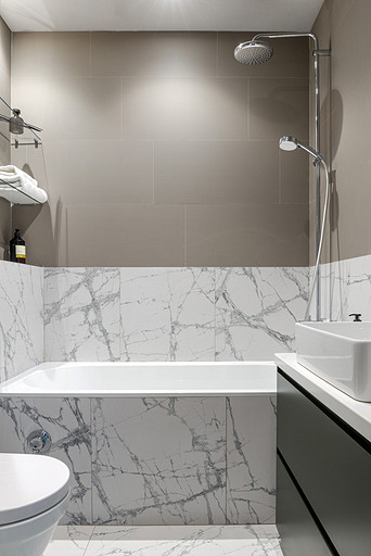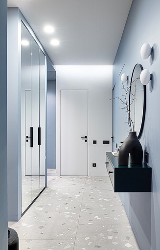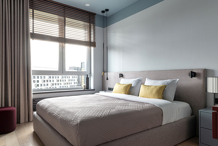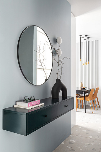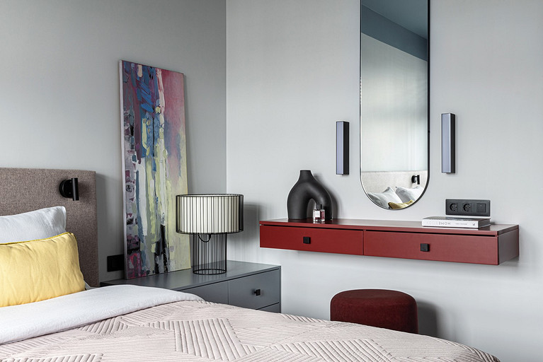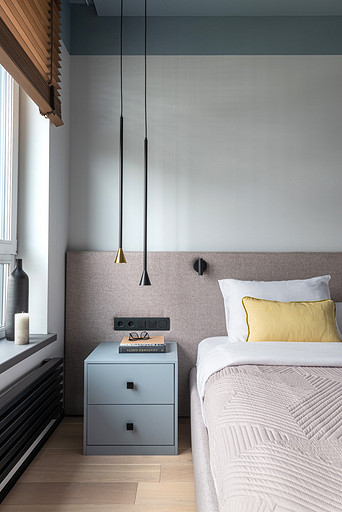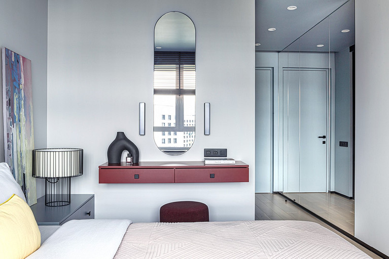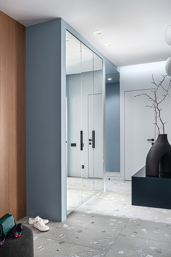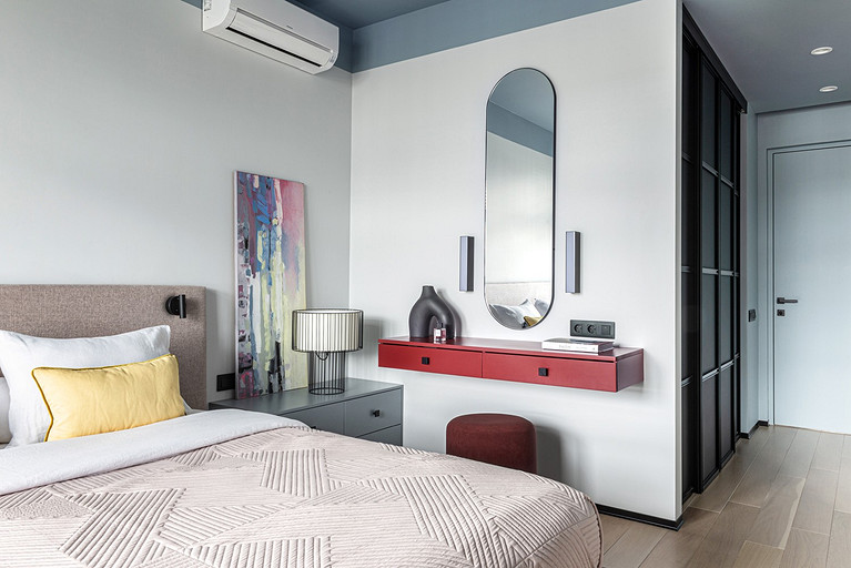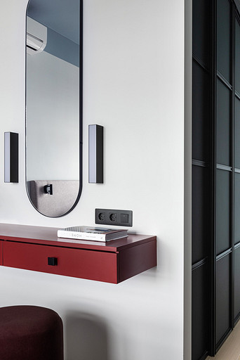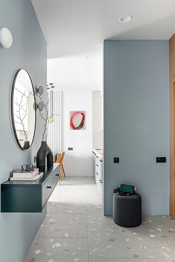 Лаконичный интерьер едва ли покажется скучным: авторы проекта оживили акцентами каждую функциональную зону. Прием этот перекликается с архитектурой жилого квартала, где светлые фасады домов украшены цветными вставками. Простая, но стильная обстановка и гармоничная палитра способствуют психологическому комфорту, а горизонтальные и вертикальные цветовые блоки визуально изменяют пространство. Читать далее...