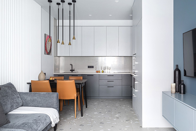 - Мебель: диван SK Design, подвесная тумба Lulu Space, стол и стулья Anni Haus