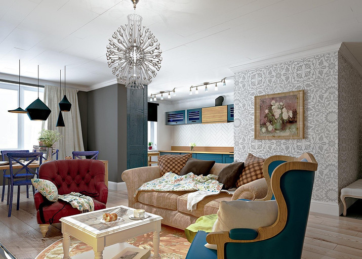 Дизайн-проект объединения трёхкомнатной и однокомнатной квартир