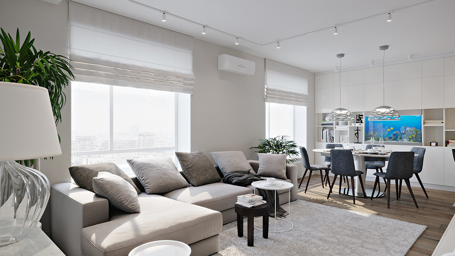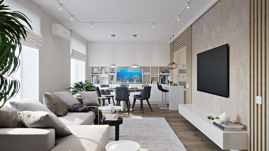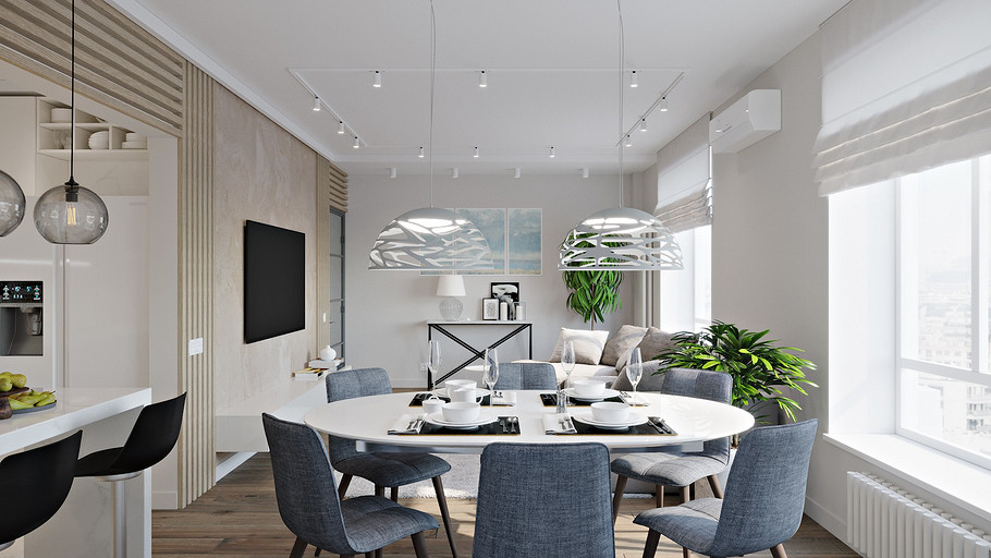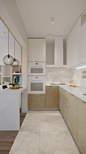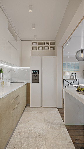 Керамика, сланец, стекло и дерево окружает нашу жизнь и быт человека на протяжении тысячелетий, и вещи, сделанные из этих материалов, ассоциируются у нас с уютом и теплом домашнего очага. Встроенный кухонный комплект из керамики, имитирующей серый бетон, будто высечен из цельного блока. Высокий цоколь создает ощущение парящих над поверхностью конструкций, а четкие линии абсолютно гладких панелей дверок и ящиков без ручек не оставят равнодушными даже самых требовательных приверженцев простоты и строгости стиля. Ящики и дверцы с механизмом открывания TIP-ON (открываются легким нажатием) воплощают в жизнь эту интересную задумку.