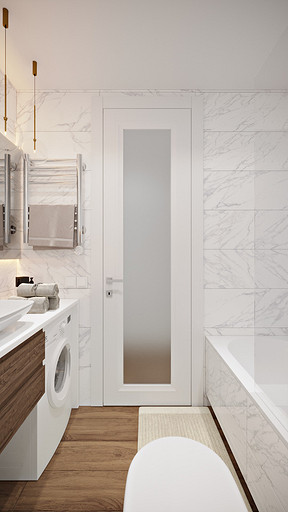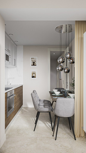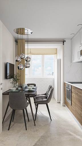 Интерьер выполнен в современном стиле. Данная планировка создана под запросы нашего клиента. В дизайне этой малогабаритной квартиры мы использовали такие материалы как дерево, штукатурка, крупноформатная плитка и настенная роспись. Особое внимание уделили освещению, в проекте много световых решений. Интерьер получился очень уютным, немного строгим и невероятно стильным.
