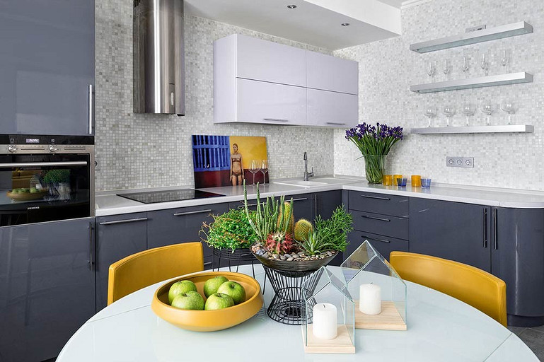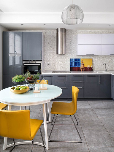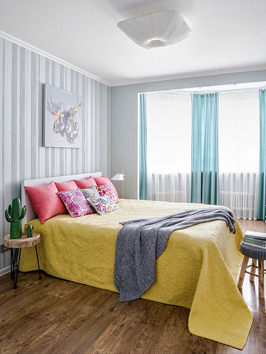 Интерьер квартиры для молодой пары получился стильным, ярким и современным.