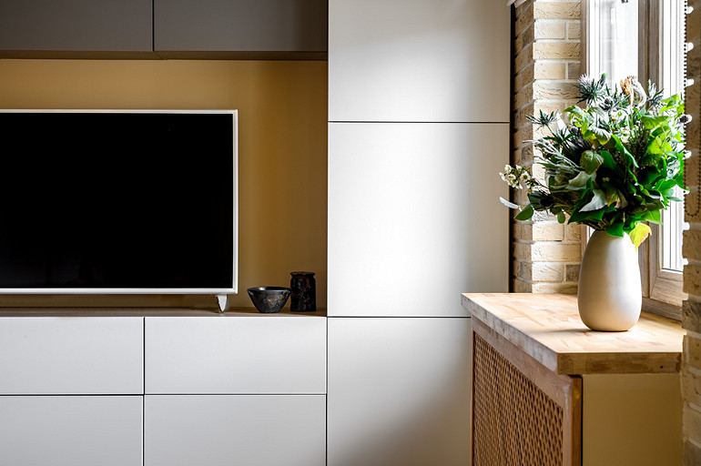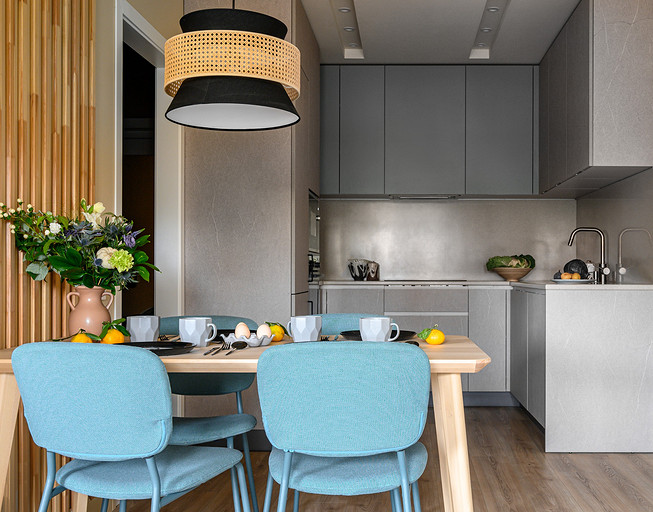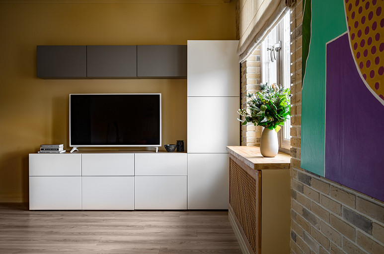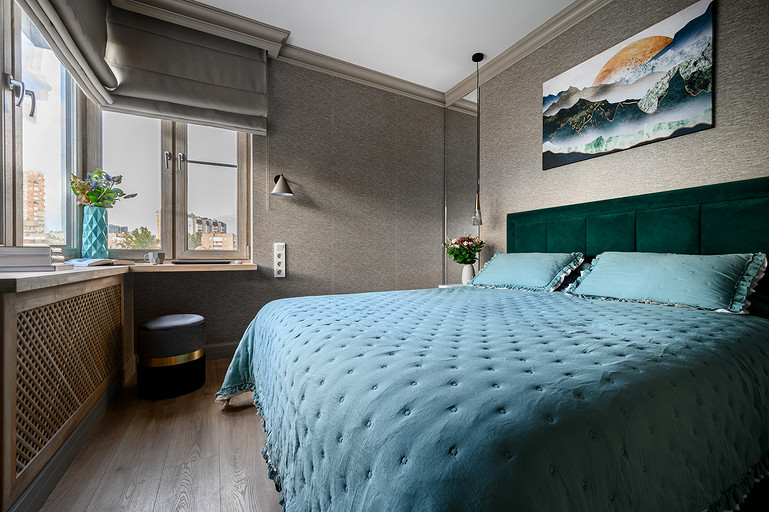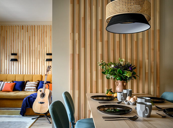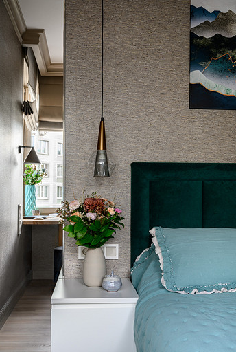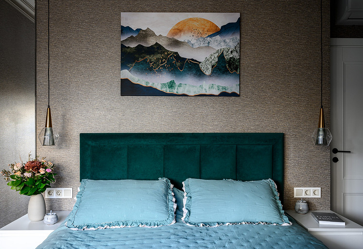 - Декор: картина Mariarti (Марина Томах), Riva Gallery, керамический светильник — Полина Артамонова, Izzi Decor, керамика Bongo Ceramics