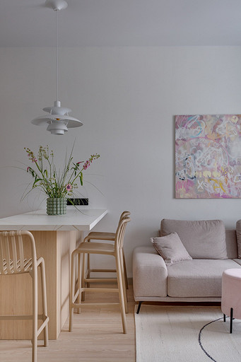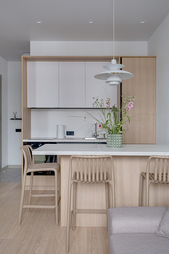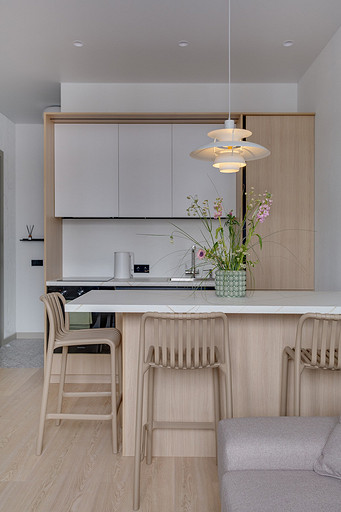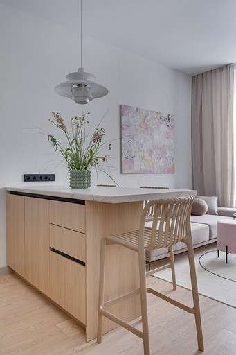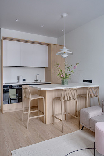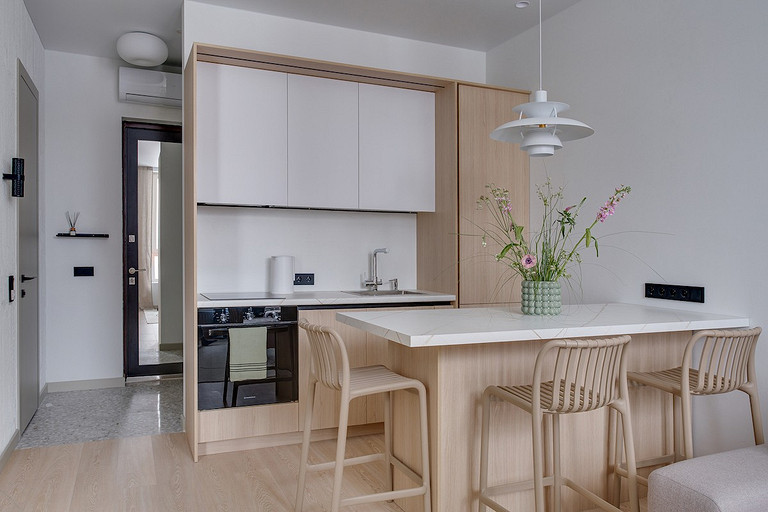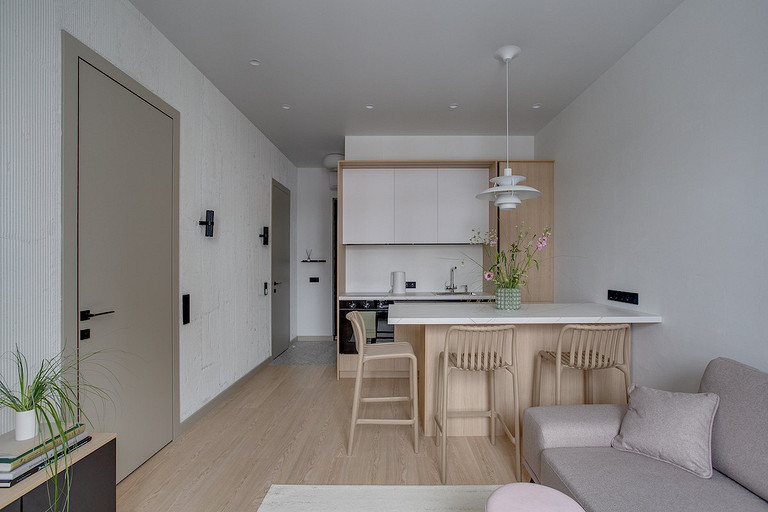 В небольшом пространстве удалось вместить впечатляющее количество функциональных зон. Причем интерьер выглядит просторным за счет выбора светлой отделки и мебели. Читать далее...