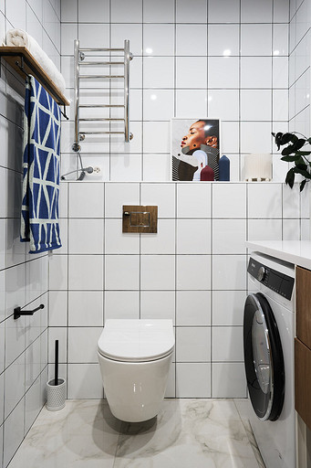 - Сантехника: подвесной унитаз Stworki, инсталляция Grohe, раковина «Цвет и Стиль», душевая стойка Lemark