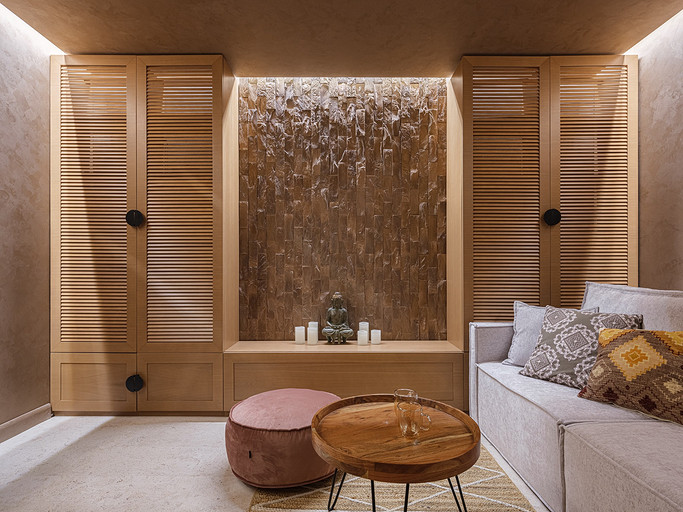 Проект быстрой переделки загородного дома с ремонтом начала 2000-х в современный интерьер для молодой девушки. Не меняли конструктивные элементы, оставили все, что принципиально не мешало понятию современного интерьера, но обновили всю отделку стен, полов, полностью санузлов, заменили двери. Получился светлый, экологичный и современный интерьер, вполне бюджетный в реализации, но теперь у хозяйки не есть не только обустроенная жилая зона, но и используемая зимняя веранда, спортзал и зона отдыха при сауне.