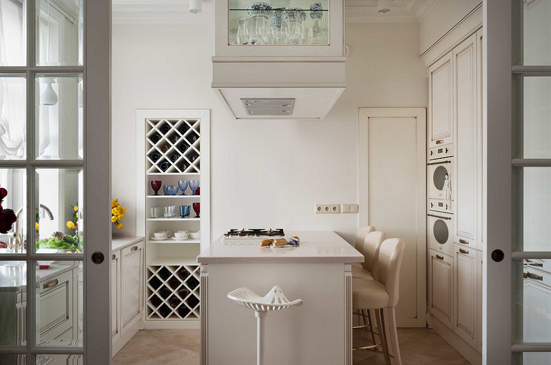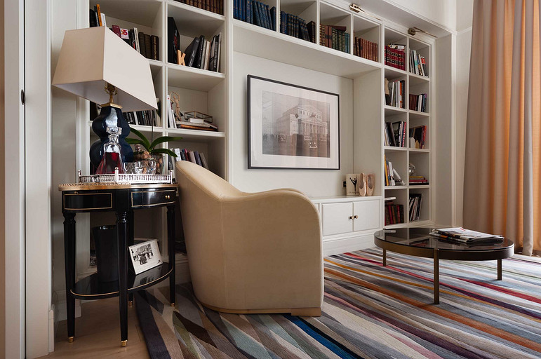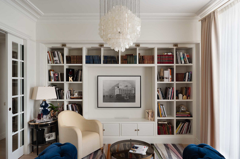 Небольшая квартира расположена в историческом центре Москвы, в доме с красивым видом на набережную и реку, что сделало панорамы составной частью интерьера.