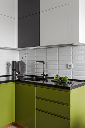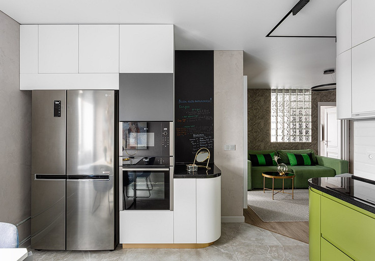 - Мебель: гарнитур «Кухонный двор» (выполнен по визуализации), стулья Marco Artu, обеденный стол Tory Sun