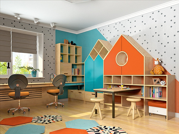 Особенность проекта: создание интерьера в эстетике контемпорари и функционализма для семьи с тремя детьми. Гостиная, кухня и холл визуально объединены открытыми проёмами и продуманными осевыми композициями.