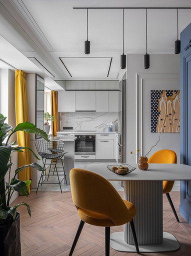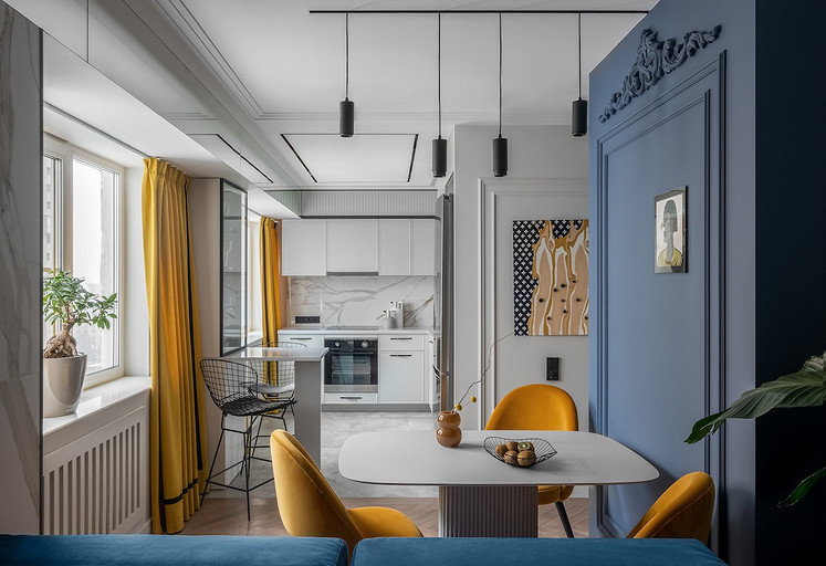 - Мебель: обеденный стол «Ток Мебель», диван и стулья Mebelform, придиванный столик Designboom